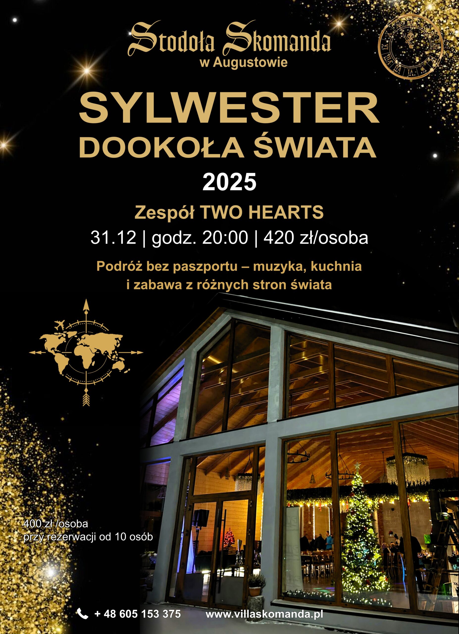 20:00-3:00 Zabawa Sylwestrowa “Dookoła Świata” z zespołem TWO HEARTS